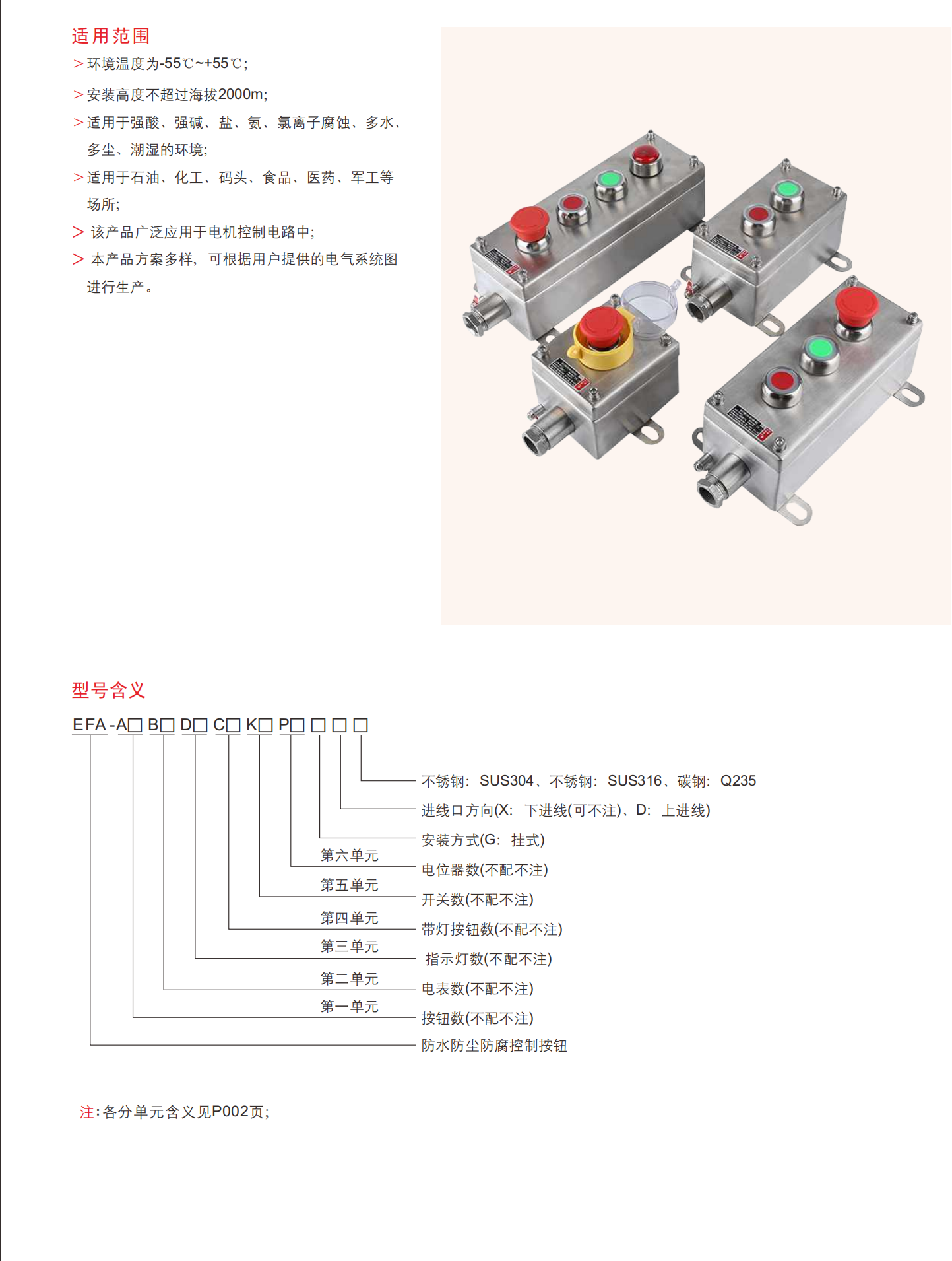 EFA防水、防尘、耐腐蚀控制按钮 (不锈钢/碳钢)