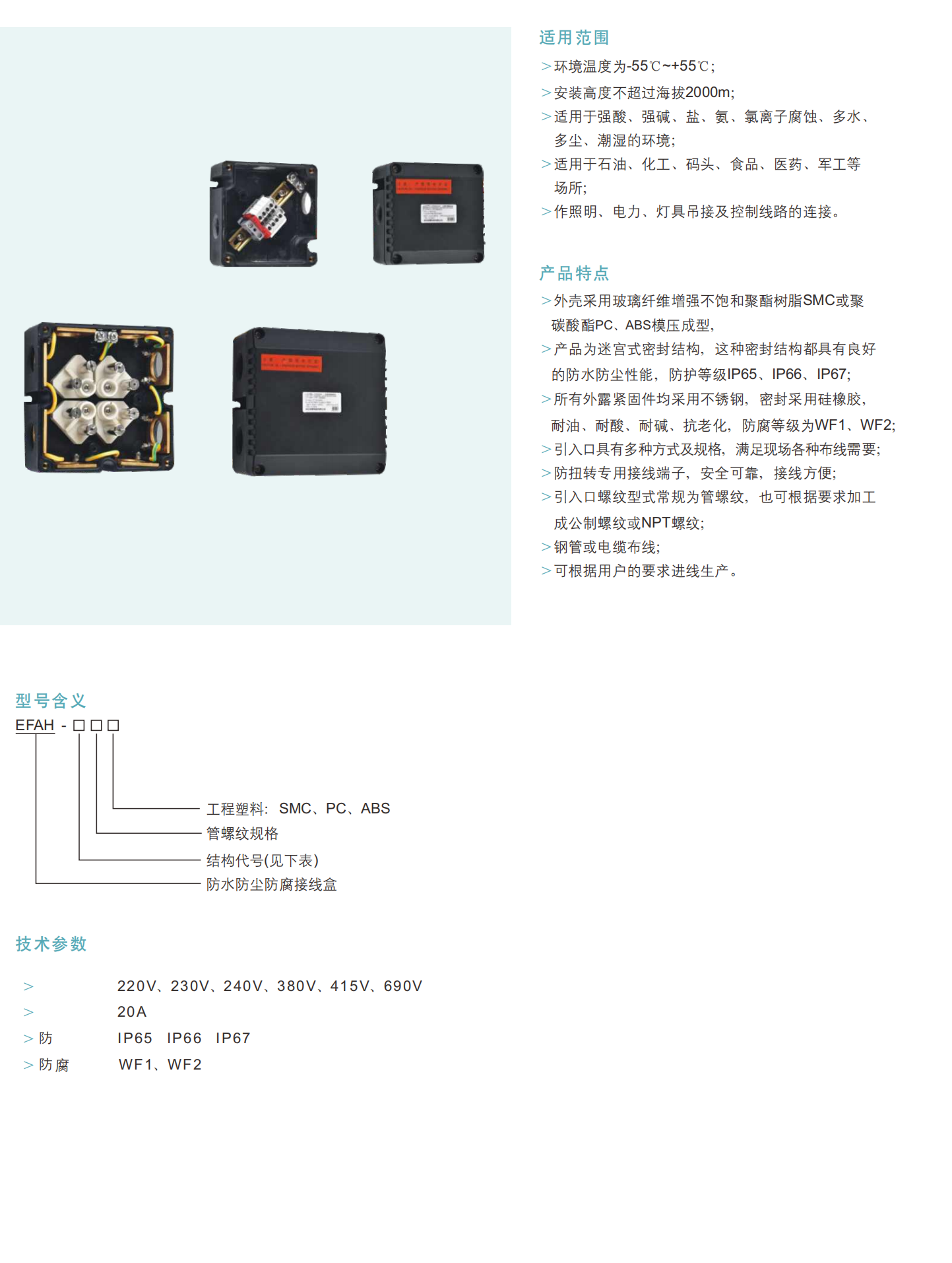 EFAH-防水、防尘、耐腐蚀接线箱 (工程塑料)