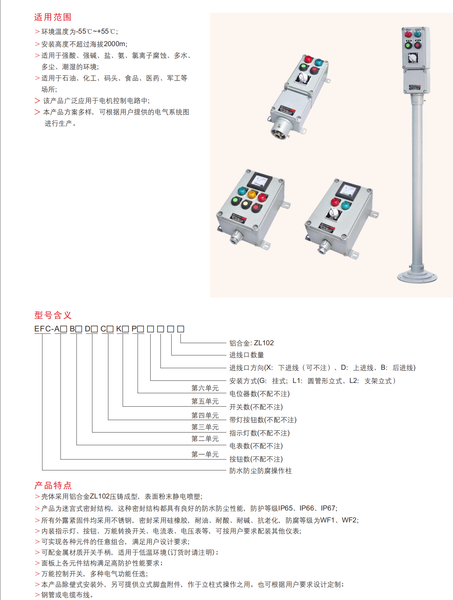 EFC防水、防尘、耐腐蚀操作柱 (铝合金)