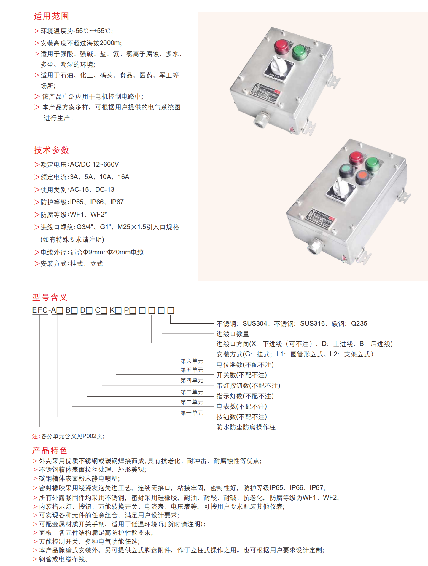 EFC防水、防尘、耐腐蚀操作柱(不锈钢/碳钢)