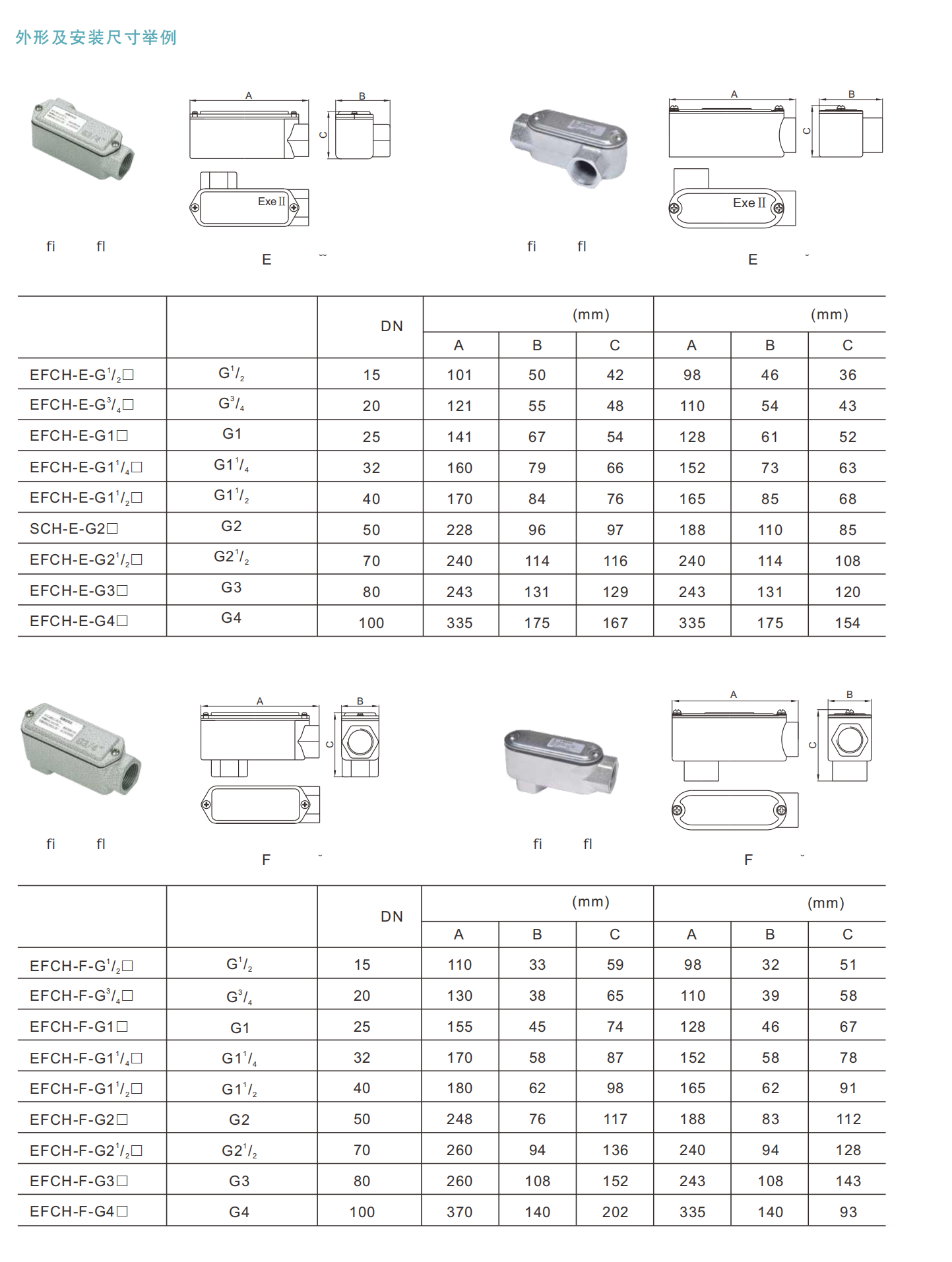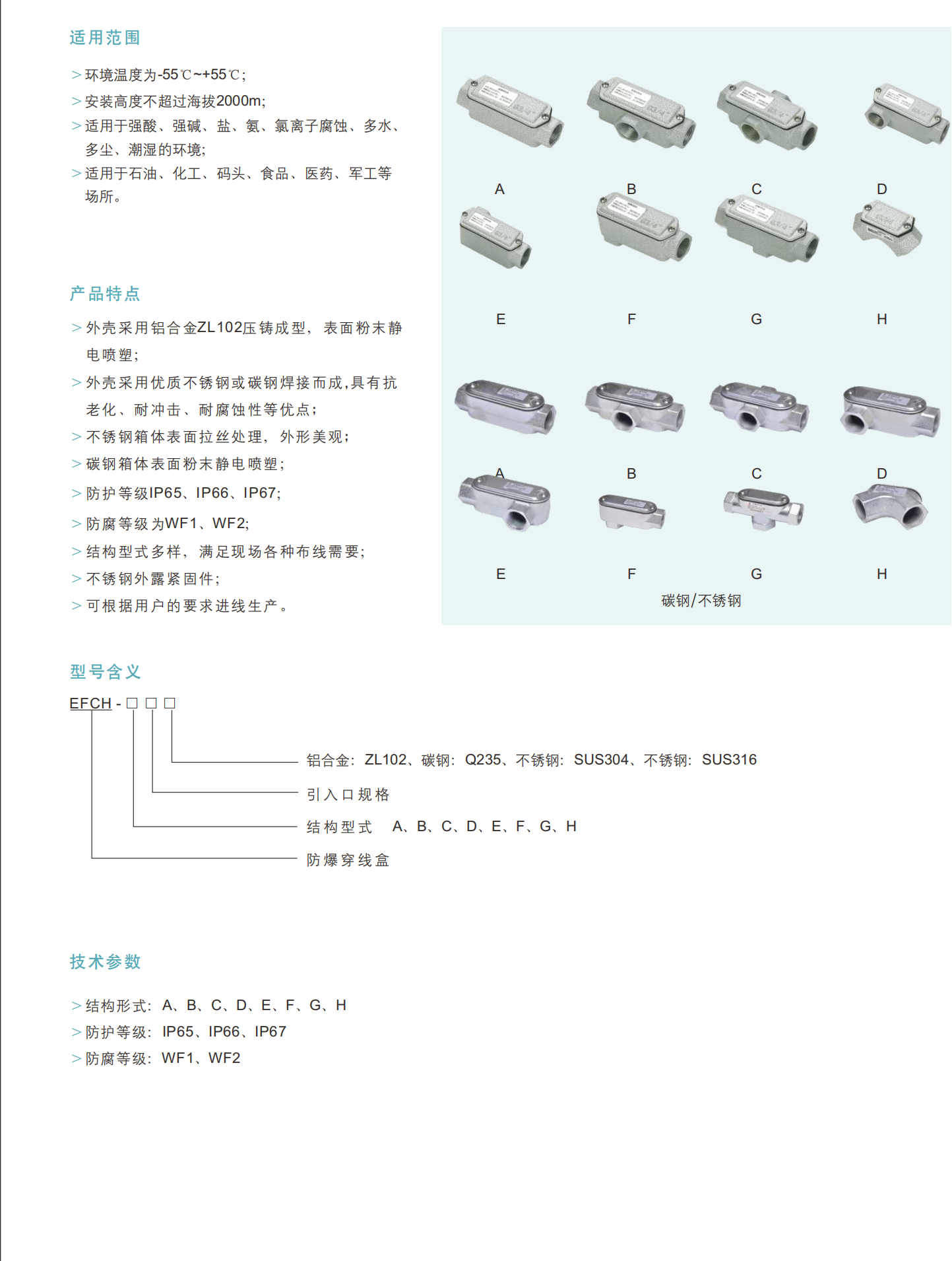 EFCH-防水、防尘、耐腐蚀穿线盒 (铝合金、不锈钢、碳钢)