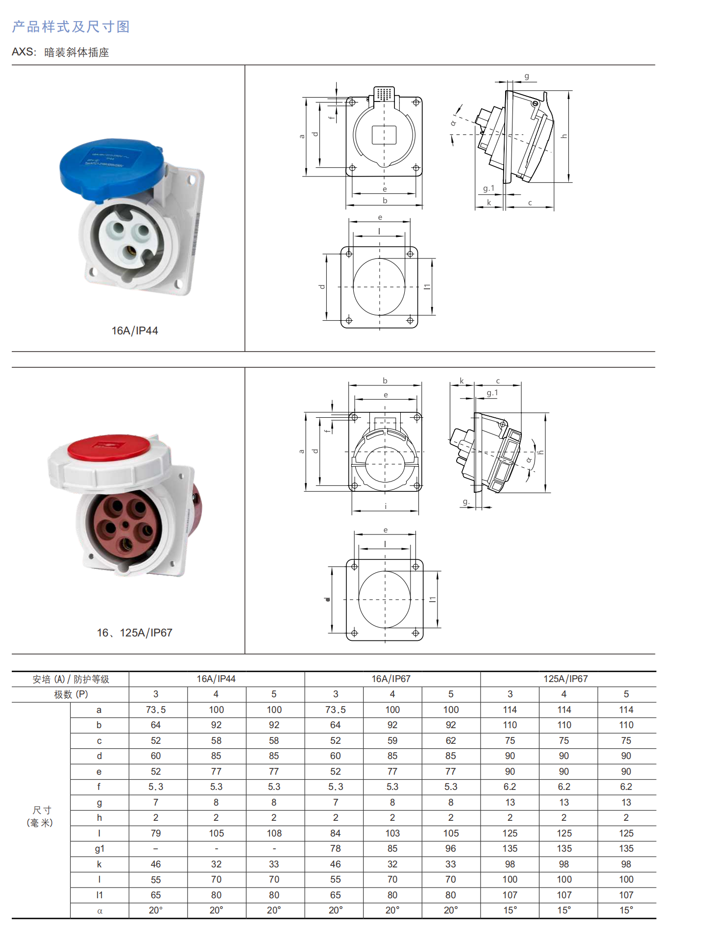 EFCX防水、防尘、耐腐蚀插销 (工程塑料)-暗装斜体插座