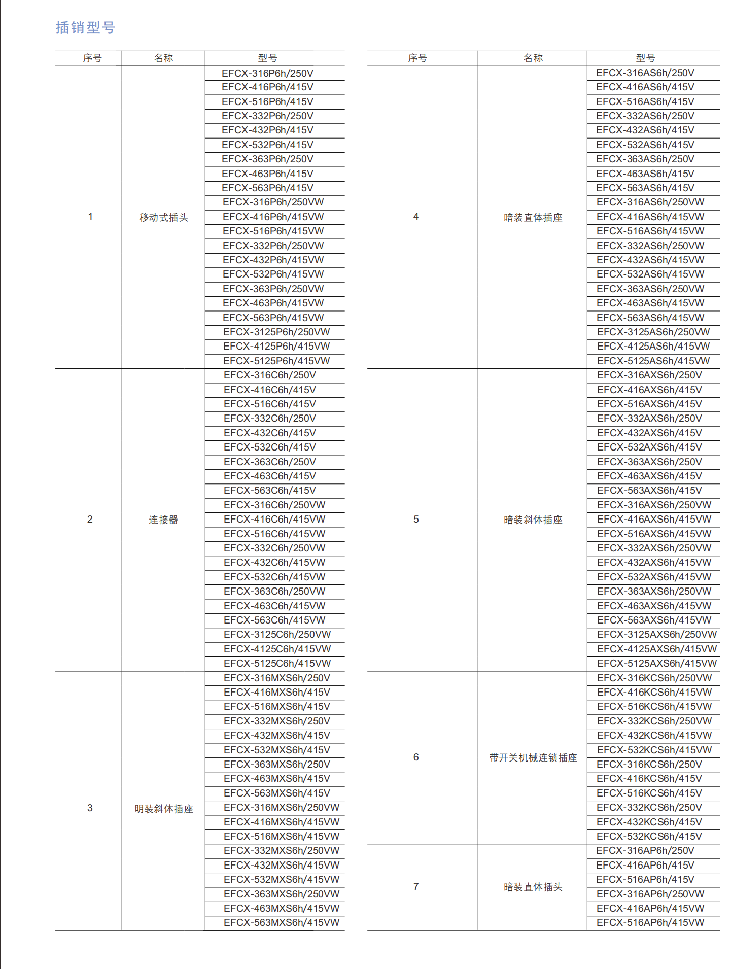 EFCX防水、防尘、耐腐蚀插销 (工程塑料)-暗转直体插头