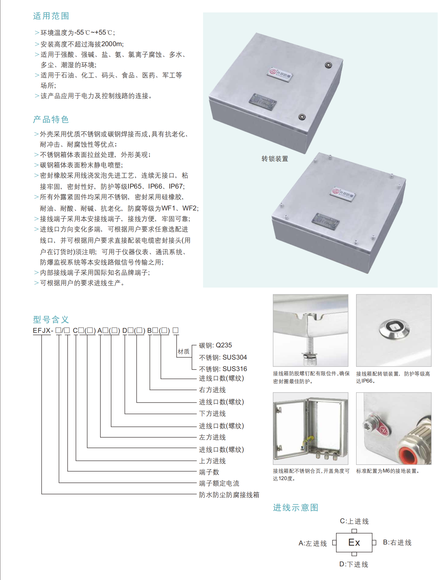 EFJX防水、防尘、耐腐蚀接线盒 (不锈钢/碳钢)