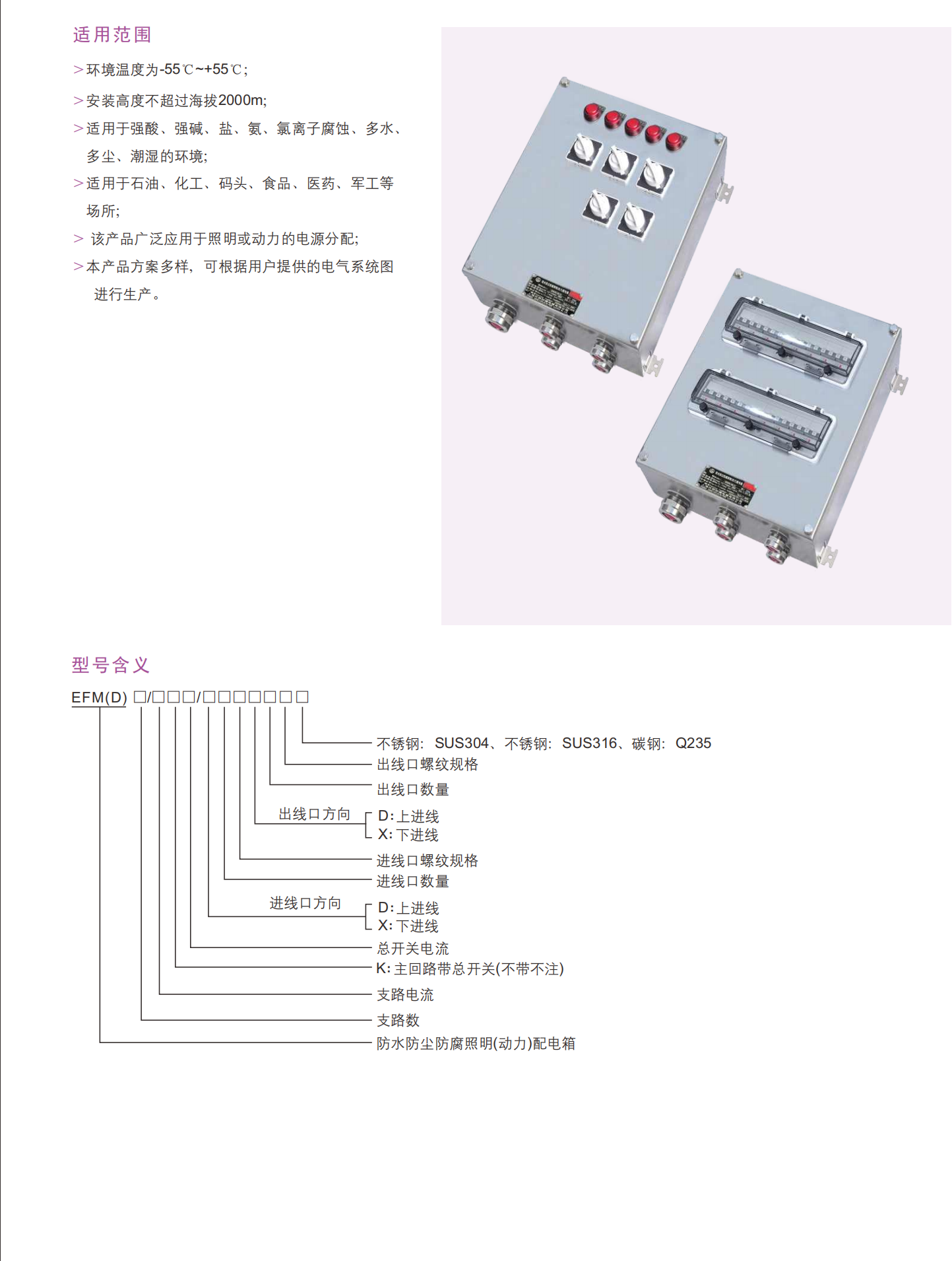 EFM(D) 防水、防尘、耐腐蚀照明 (动力) 配电箱 (不锈钢/碳钢)