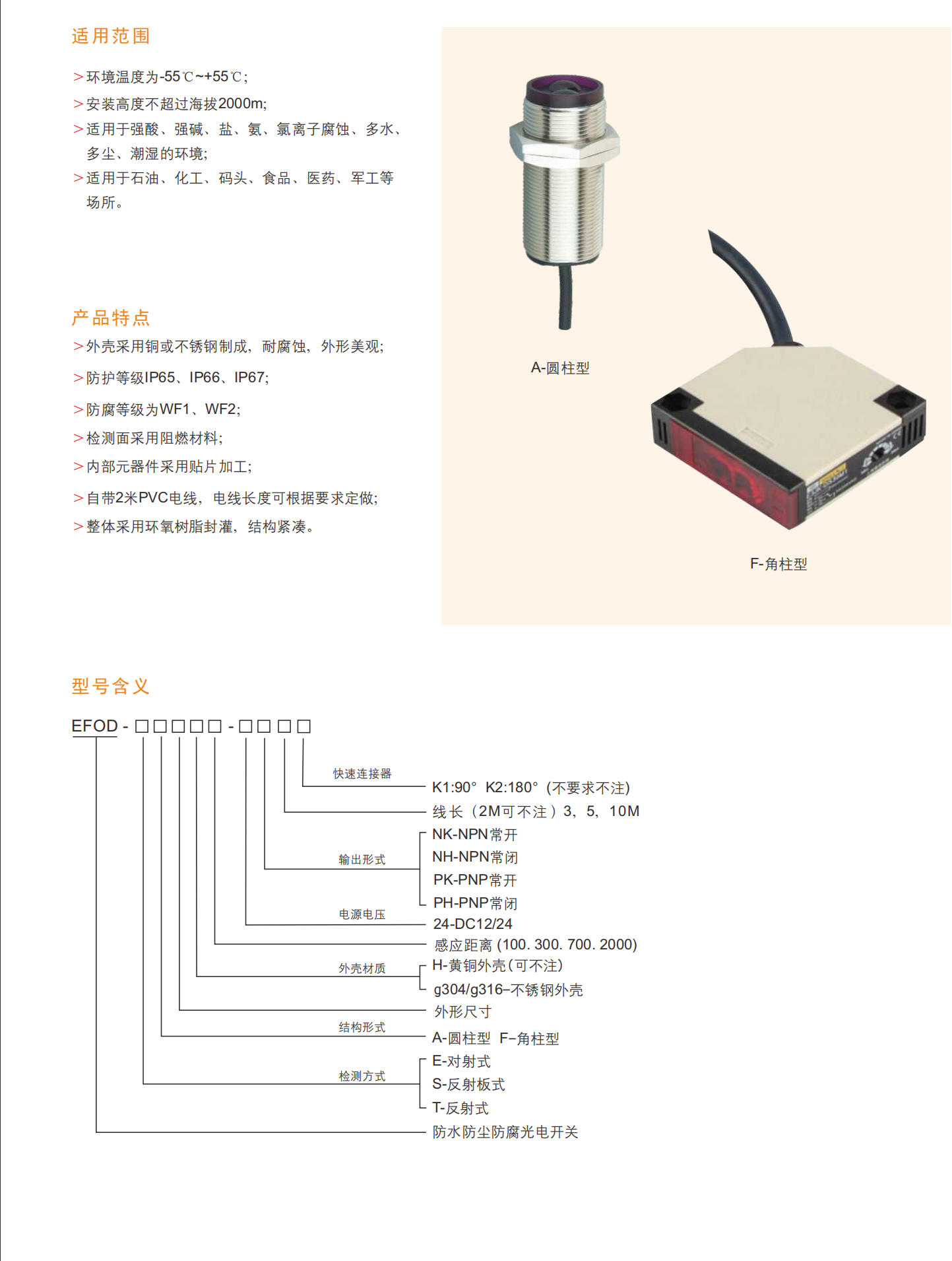 EFOD防水、防尘、耐腐蚀光电开关