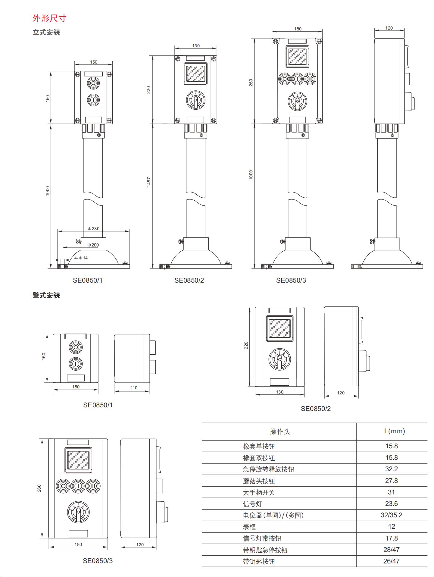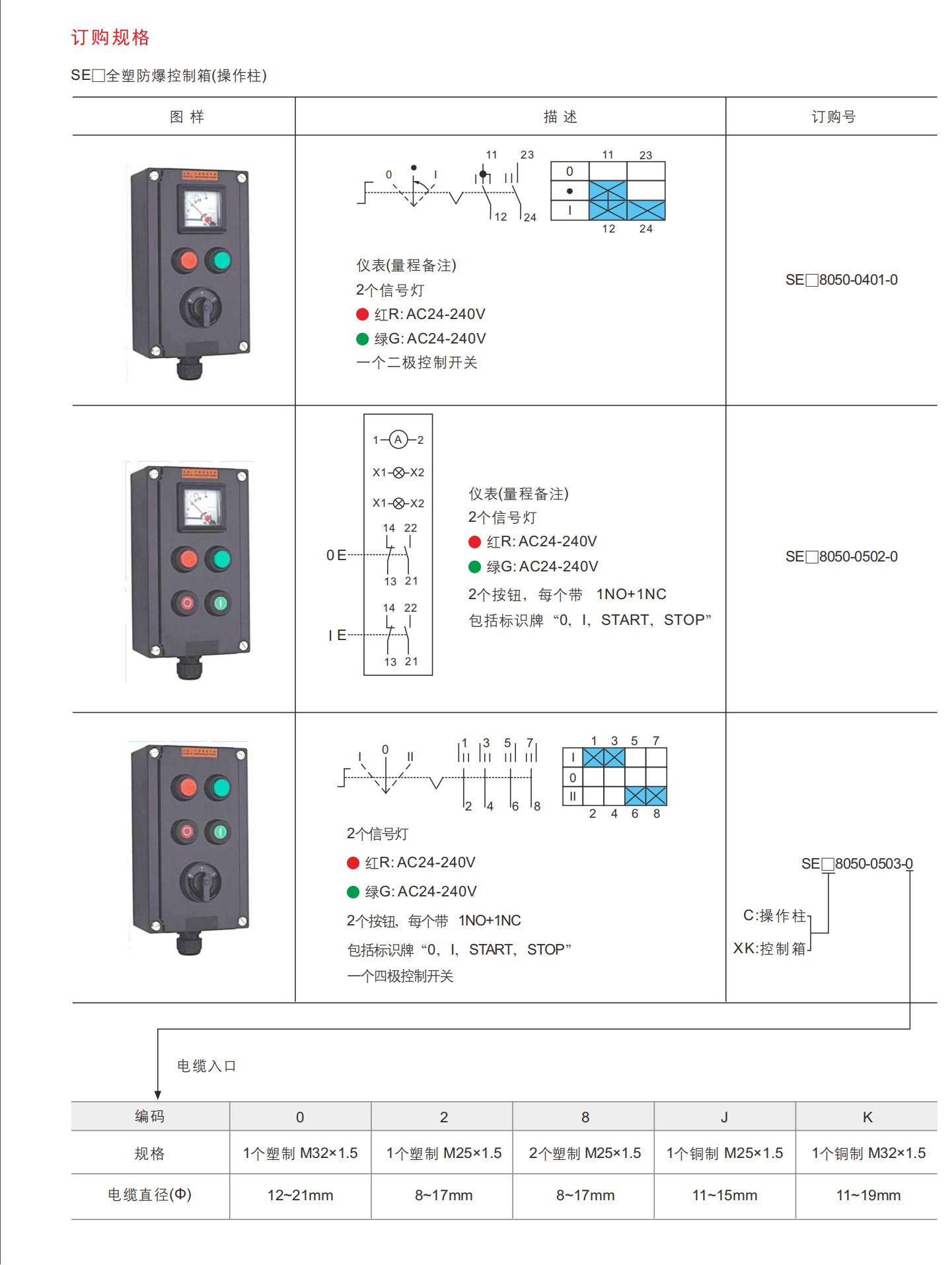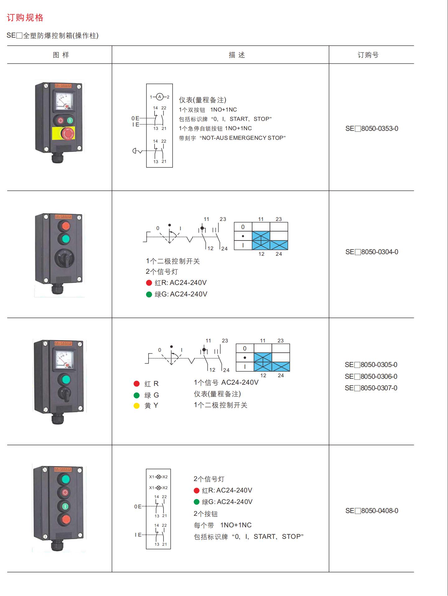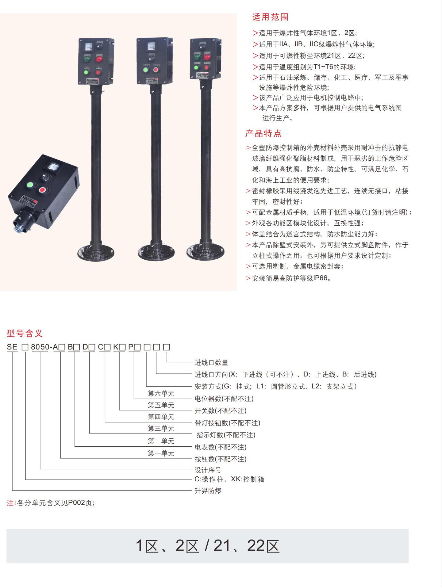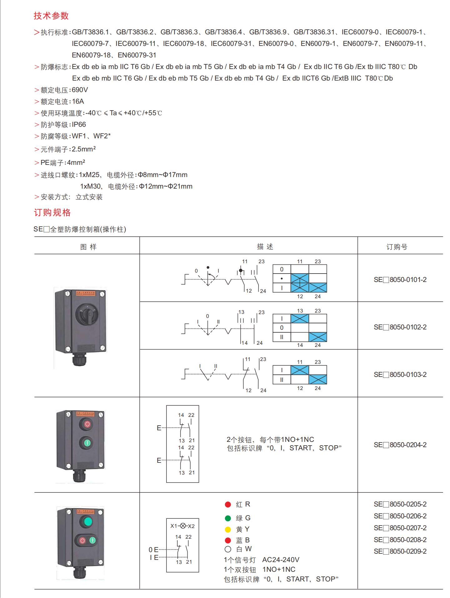 SE8050系列专为1/2区气体 (IIA,IIB,IIC) 和21/22区粉尘环境设计,为炼油厂、化工厂和军事设施提供高度可定制的控制解决方案。具有防静电玻璃纤维增强聚酯外壳与无缝泡沫橡胶密封件,它实现了IP66-rated保护和WF1/WF2耐腐蚀性,理想的恶劣海洋或化学环境。独特的模块化设计允许快速组件交换 (按钮,仪表,指标) 基于用户原理图。支持双安装 (墙/底座) 与低温操作可选的金属手柄。通过Ex db eb ia mb IIC T6 Gb/Ex tb IIIC T80 °C Db (GB/T3836,IEC/EN60079) 认证,包括M25/M30电缆接头 (8-21mm) 并在极端温度 (-40 °C至55 °C) 下运行。