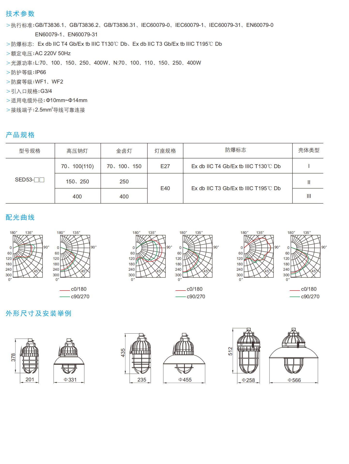 SED53系列提供强大的照明区1/2气体和21/22区粉尘环境,为石油,化工,海洋应用。采用压铸铝合金外壳,镀锌碳钢防护装置和棱柱形硼硅玻璃镜片,可确保IP66/WF2-rated的耐腐蚀性和抗冲击性。通过Ex db IIC T4 Gb/Ex tb IIIC T130 °C Db (GB/IEC/EN) 认证,支持金属卤化物 (70-400W) 和高压钠 (70-400W) 具有独立防爆室的灯具。特点不锈钢紧固件,耐盐水硅胶密封,和模块化设计需要外部镇流器。灵活的安装 (天花板,墙壁,法兰) 和G3/4导管布线适合恶劣的T1-T4/T3环境。