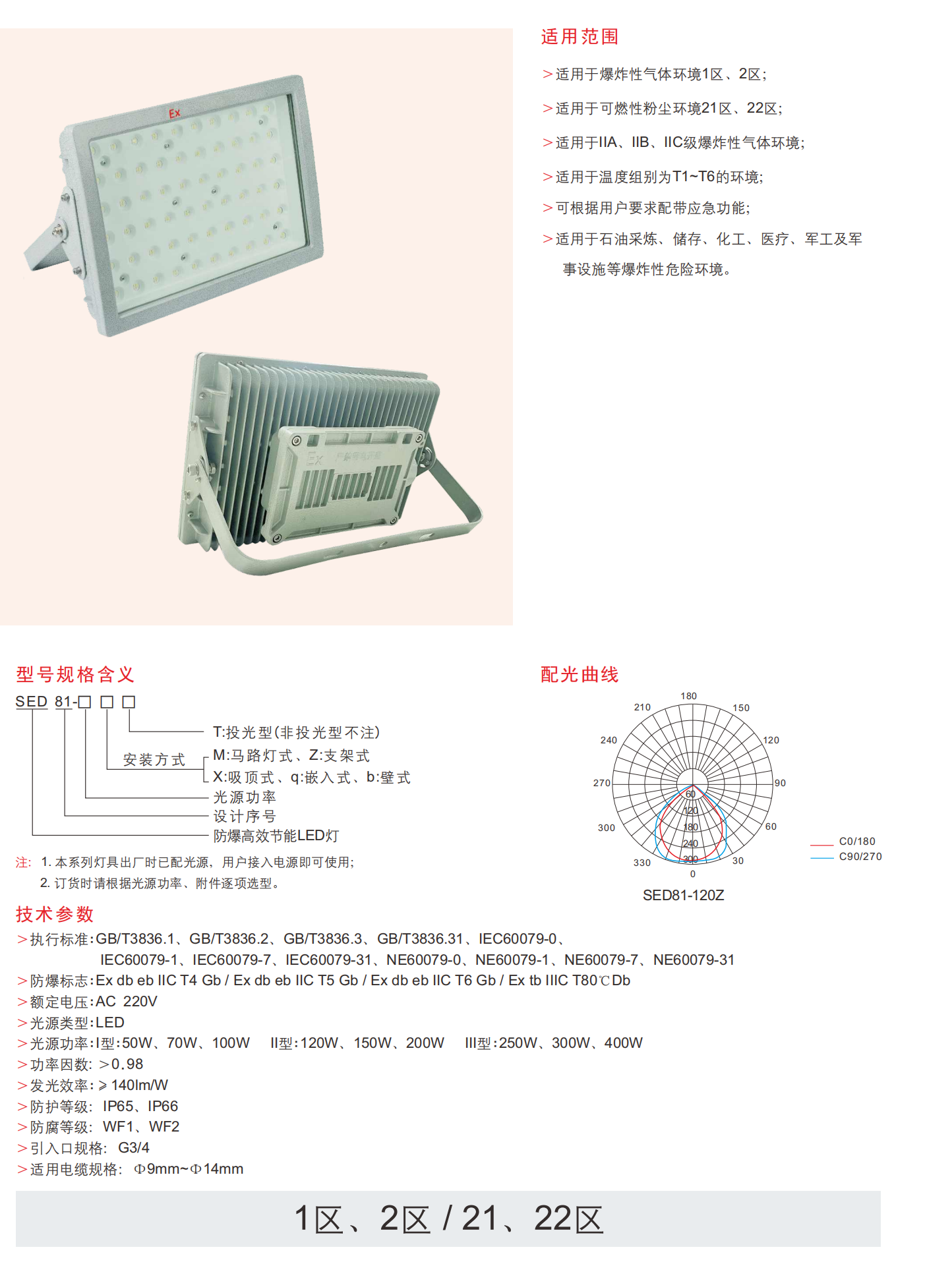 SED81系列提供防爆,节能LED照明设计的危险环境 (区域1/2,21/22)。具有带静电涂层的铝合金外壳,不锈钢紧固件和IP65/66防护等级,它们具有防尘和防水性能,适用于工业应用。SED81系列符合国际安全标准,确保在爆炸性环境中的可靠性能。石油,天然气和化学工业的理想选择。