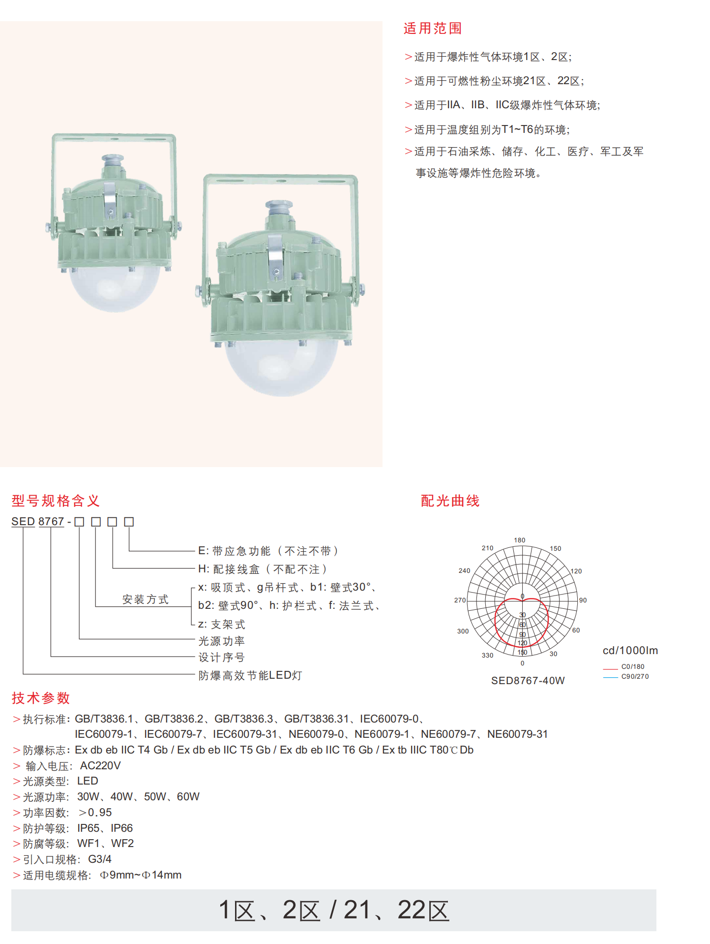 专为1/2区气体 (iia-iic) 和21/22区粉尘环境设计,SED8767系列通过其360 ° 圆周光学器件确保零黑点的均匀照明,是炼油厂的理想选择,化工厂和军事设施。