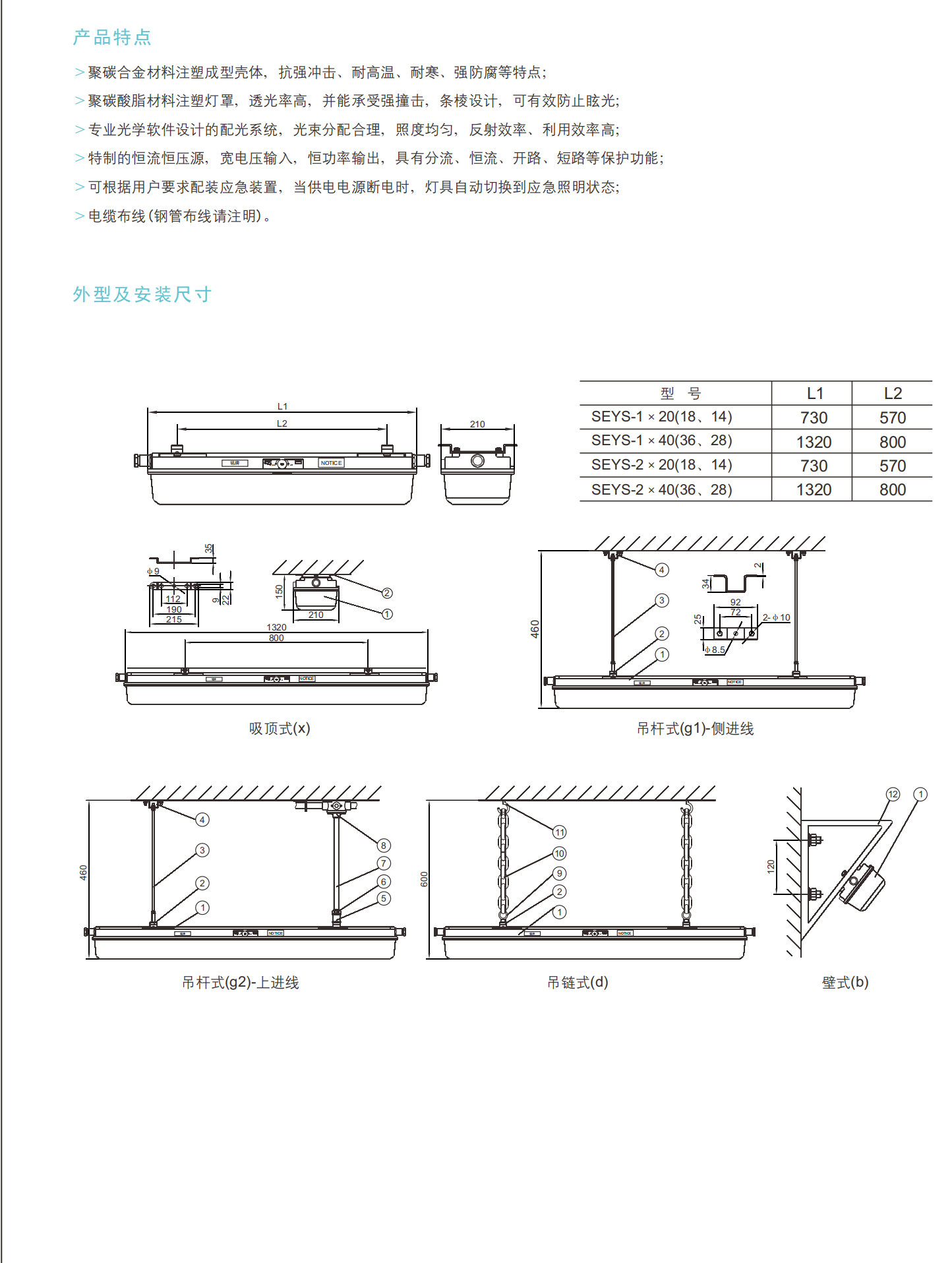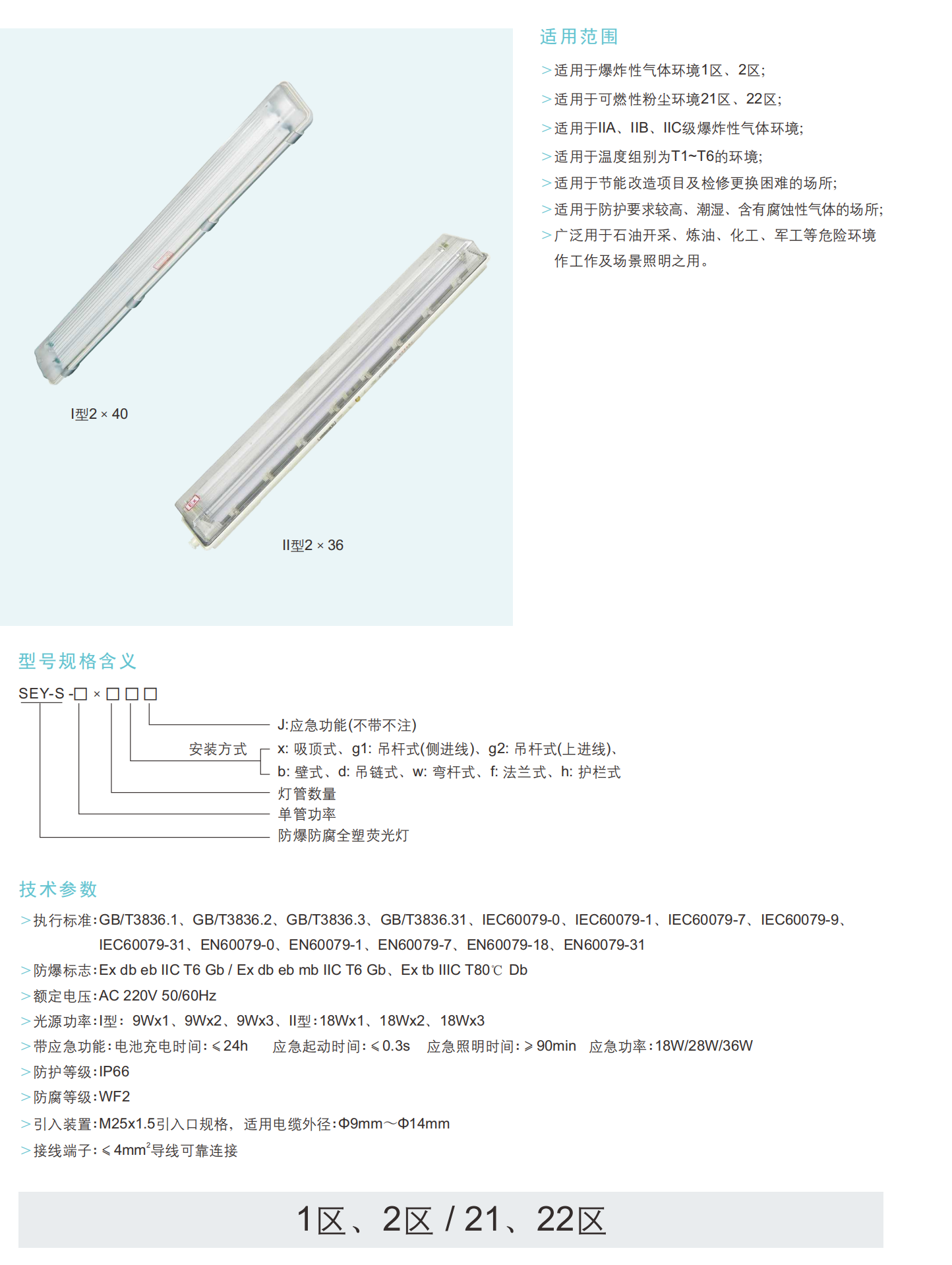 专为1/2区气体和21/22区粉尘环境,sey-s系列功能无与伦比的耐冲击性和WF2-rated的防腐蚀全聚碳酸酯结构。理想的炼油厂,化工厂,和军事场所,其防眩光棱镜透镜确保均匀的照明与最小的光损失。内置恒定电流/电压驱动器 (AC220V输入) 提供稳定的输出,而可选的紧急备份 (≥ 90分钟运行时间,≤ 0.3s激活) 保证了停电期间的安全性。通过Ex db eb mb IIC T6 Gb/Ex tb IIIC T80 °C Db认证,支持M25x1.5电缆入口 (9-14mm) 和多安装配置 (天花板、墙壁、吊坠)。具有IP66-rated的密封和-30 °C至55 °C的操作范围,它擅长于恶劣,潮湿或腐蚀性T1-T6区域。